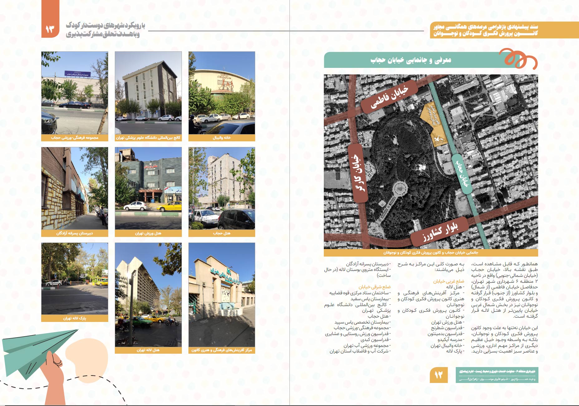 As an Urban Designer at the Municipality of Tehran, specifically in Region 6, I have gained valuable professional experience in various projects. One notable project I worked on was the urban design of Hijab Street, aimed at creating the first child-friendly street in Tehran, Iran. This initiative was conducted under the global framework of Child-friendly Cities and in collaboration with the United Nations Children's Fund (UNICEF).